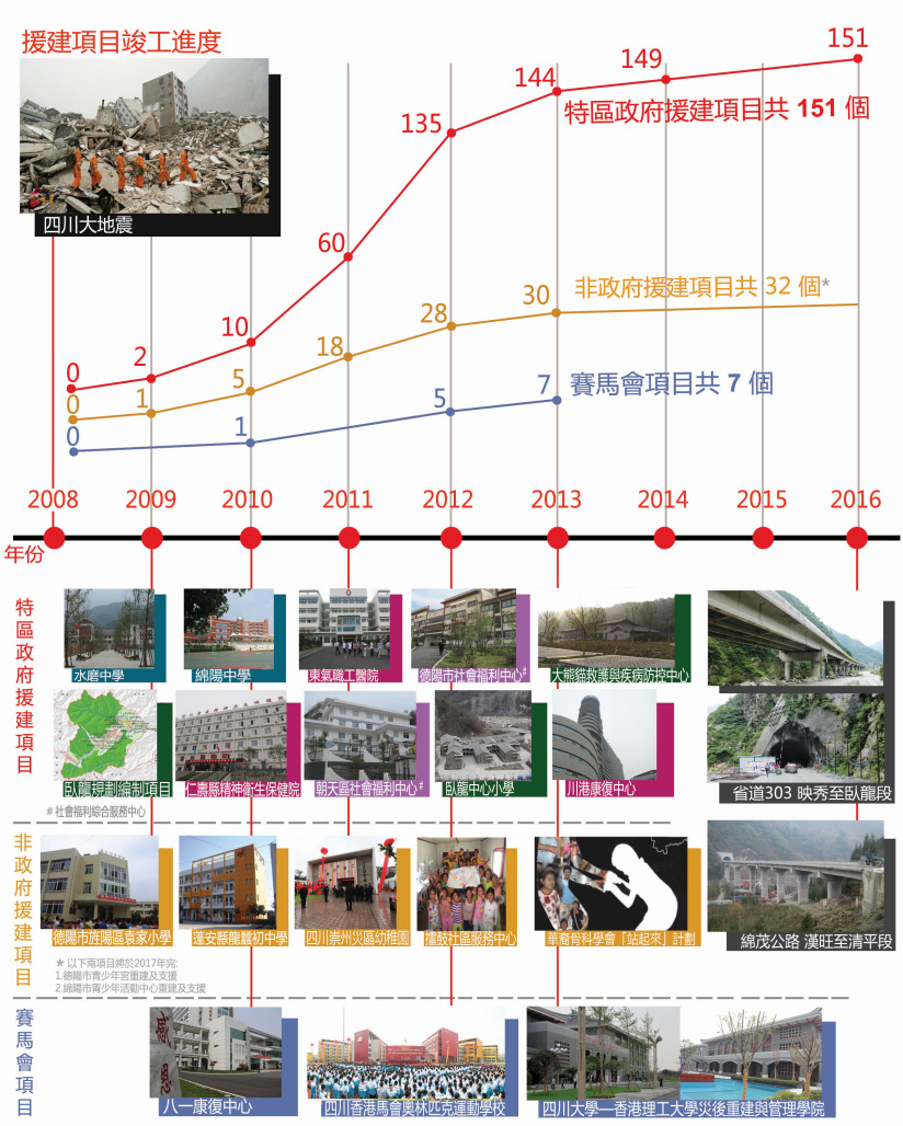 特區政府援建項目共151個,由2008開始至2016年完成